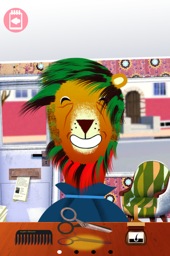 Dans Toca Hair Salon, le personnage s'installe à son siège, face à vous. Plusieurs ustensiles de coiffeur sont à disposition dans un menu déroulant en bas de l'écran: un peigne, une paire de ciseaux, des rajouts, un sèches-cheveux, une tondeuse et 12 bombes de laque colorées. Ensuite, c'est votre imagination qui parle.